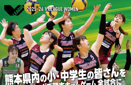 夢を育む熱狂体験! 2025-26 V.LEAGUE WOMEN ホームゲーム全試合に 熊本県下の小・中学生を 各先着100名無料ご招待!!…