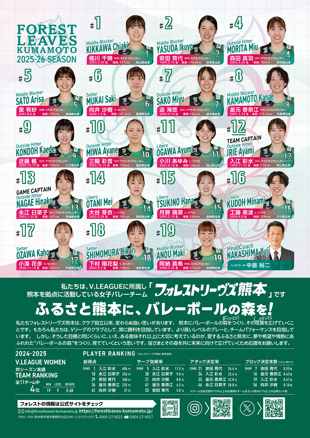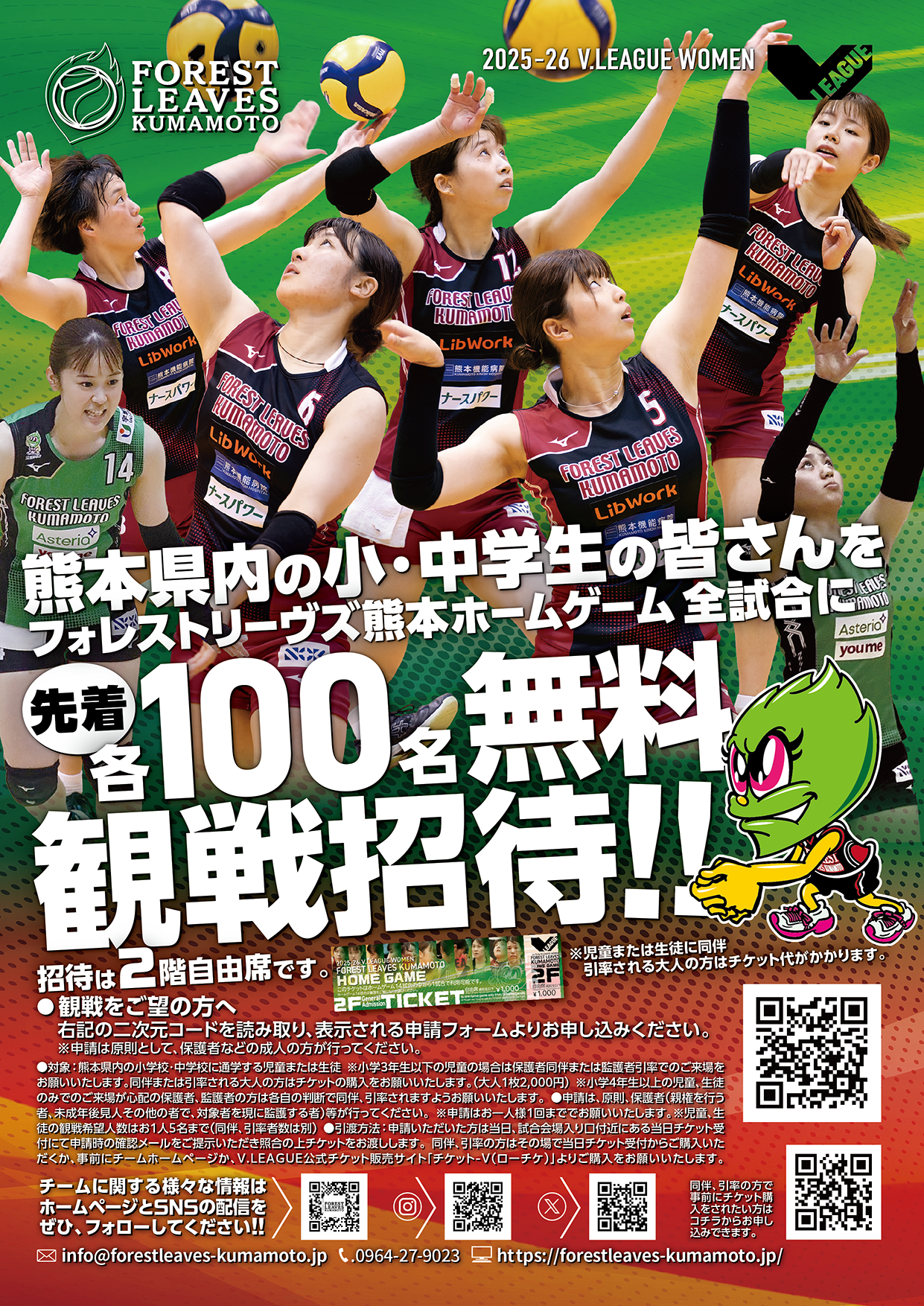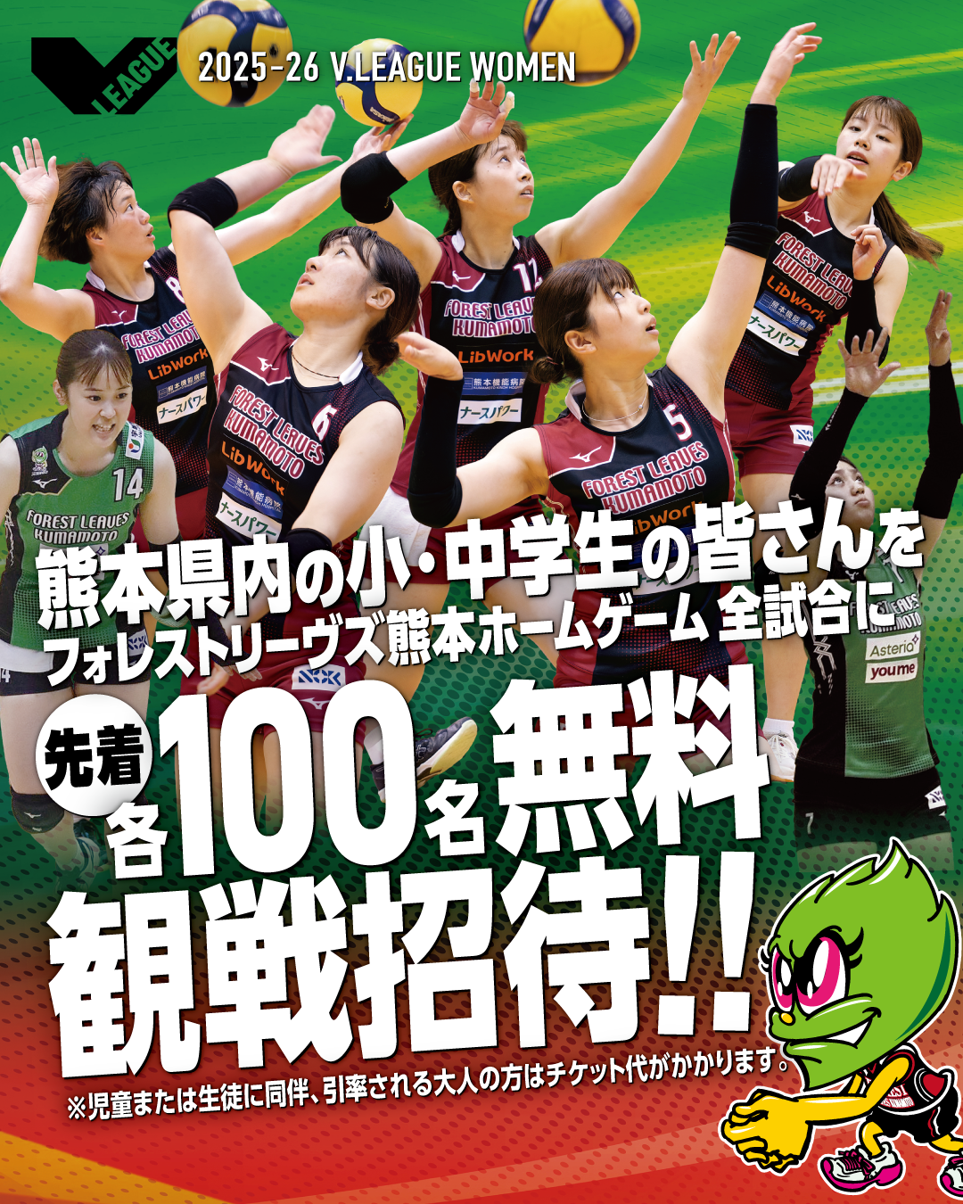● 招待試合: 2025-26 V.LEAGUE WOMEN レギュラーラウンド フォレストリーヴズ熊本 ホームゲーム全試合